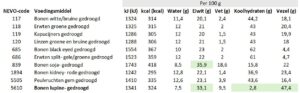 Figuur 1: NEVO-data voor gedroogde peulvruchten